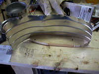 The fin is some 1/32" scrap aluminum that was attached with SS wood screws. The completed weight is about 25lbs. This was a real ugly end product because I poured the lead in too fast and the moisture in the wood sent up bubbles. If I were to do this again I would use something other than plywood for the bottom of the mold. But beauty was not a goal in this project, thank goodness.